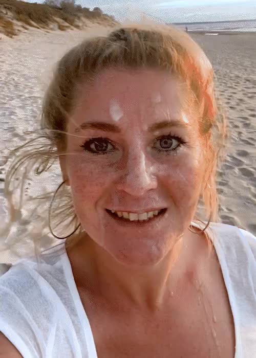 Отсосала ранним утром на ещё пустынном пляже и довольная идёт по песчаному берегу.