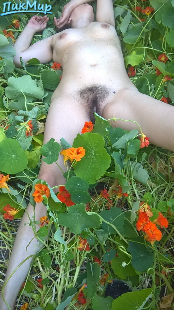 Лариса светит волосатой мандёнкой в летнии деньки у себя на даче