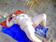 Дама полностью расположилась и расслабилась на ласково теплом солнышке,как тут заметила вдруг появившиеся рядом с ней двух сексуально-озабоченых дрочеров!)))Они просто поедали глазами обнаженные округлости дамы,и даже видно было как как сочятся и капают их слюни изо рта от увиденного.)))Один всё же не выдержал и попросил у дамы разрешение посмотреть на неё да подрочить,на что дама только рассмеялась и дала добро!)Ее заводило то с каким аппетитом и пристрастием они её рассматривают и дрочат.))И вот дама сама стала им позировать и разрешила потом и поцеловать ее везде!)))Вот такое приключение дамы пышки!)