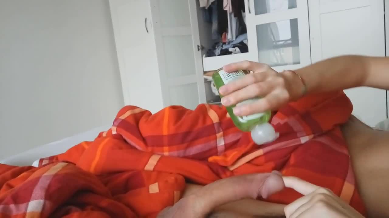 Девушка засовывает весь палец в уретру своего парня, доводя его до оргазма.