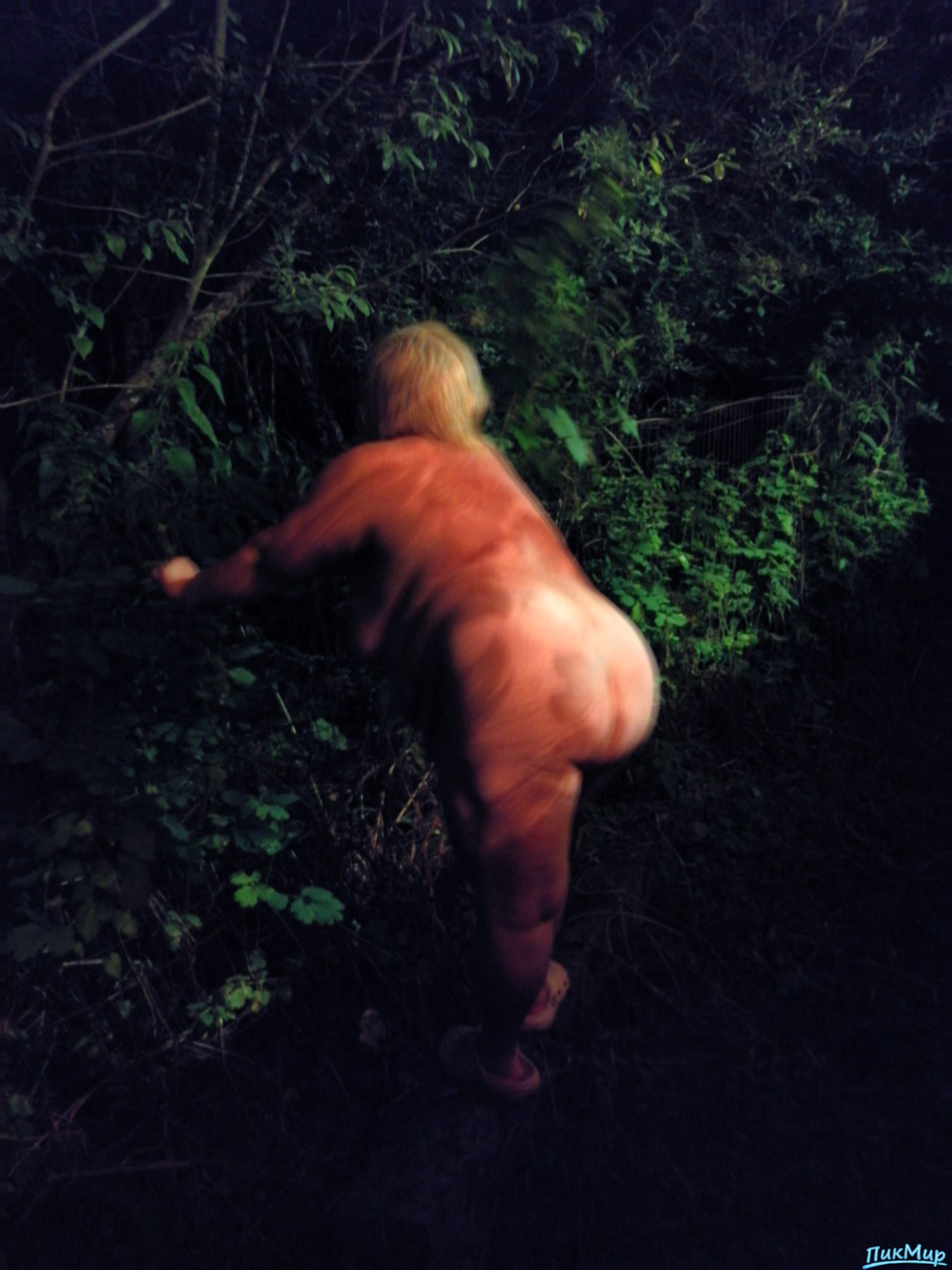 Ночная съёмка весьма удачная. А её попка белая, так и светит в ночи.