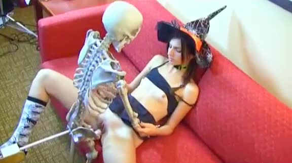 Девка трахается со скелетом. Да, секс машина, но согласитесь необычно!