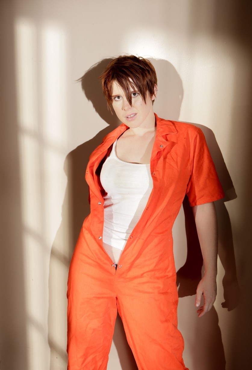 Рыжая красотка Ленка снимает комбинезон для жарких фото