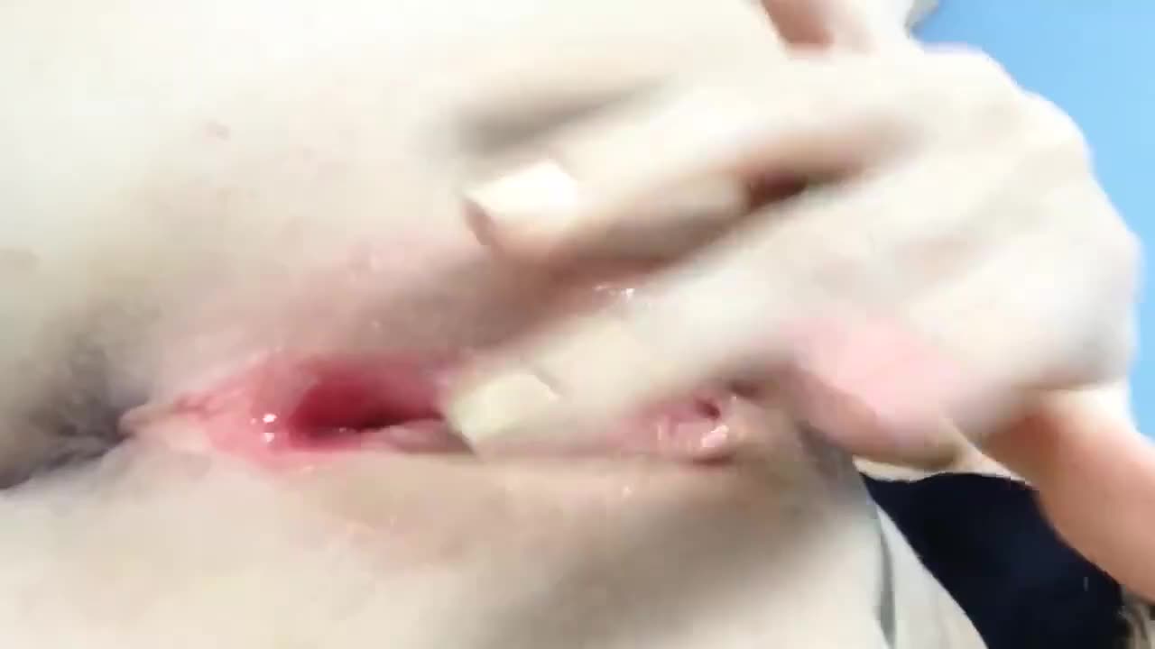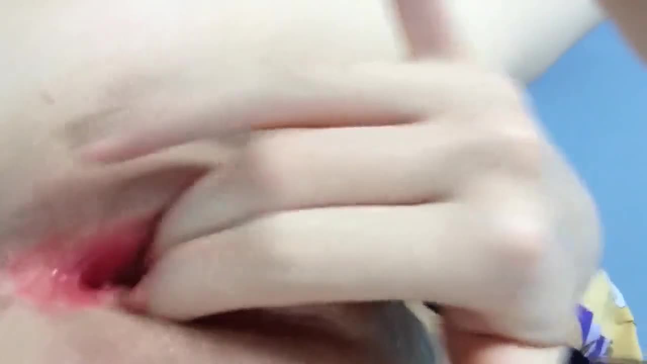Девушка трахает себя бананом и рукой