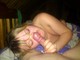Малышка при взятии члена в руки. Глазки строит занятные.