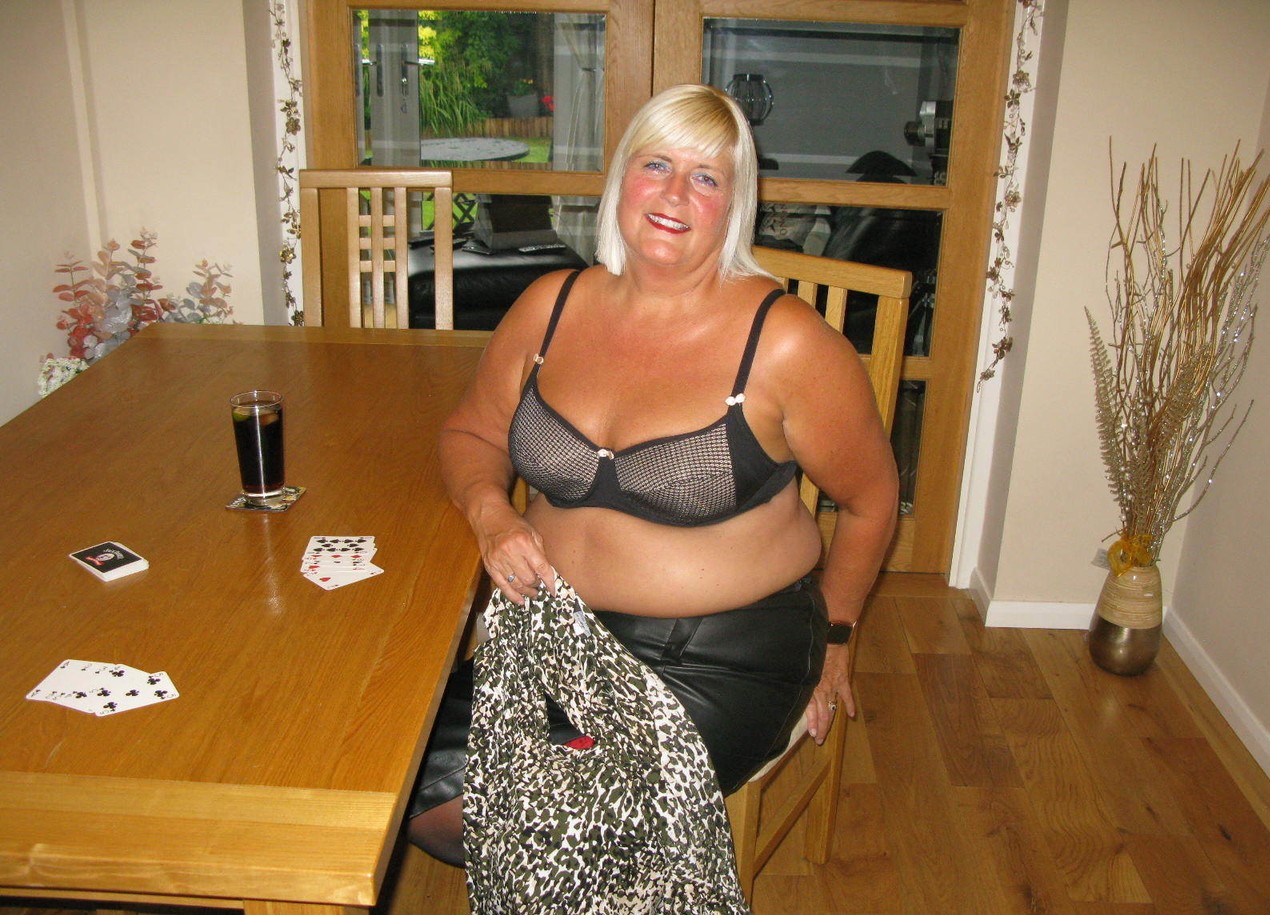 Зрелая блондинка-толстушка теряет одежду во время игры в покер на раздевание