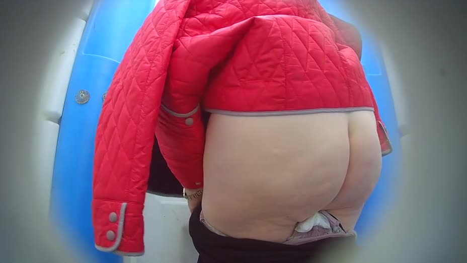 Дама в возрасте попалась на скрытую камеру, сшикарной жопой.