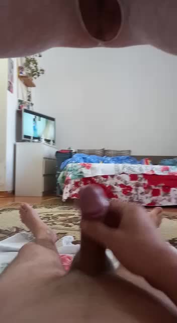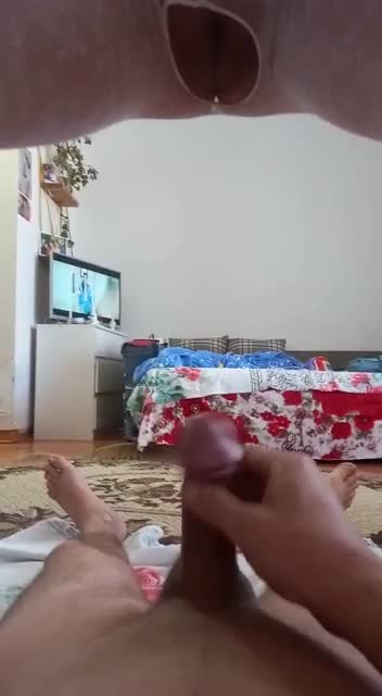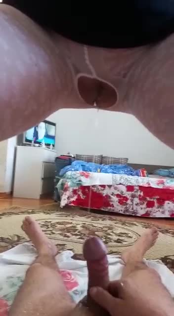 Он ждёт писс своей госпожи и подрачивает член в ожидании