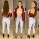 фигуристая симпотичная девочка с длинными волосами показывает свою идеальную фигурку