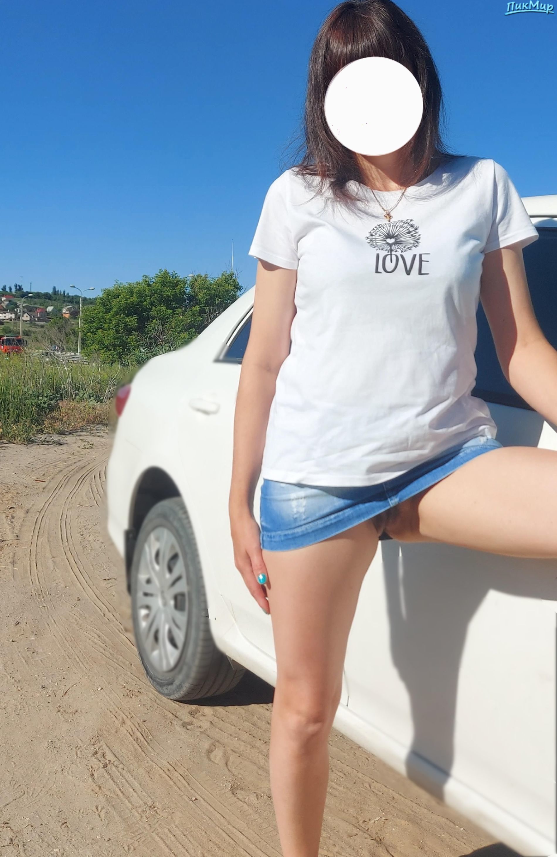 короткая юбочка и отсутствие трусиков- пикантно оделись для съемки