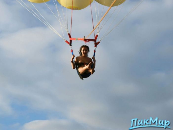 Отважная воздухоплавательница с небес всем дырками светит !..