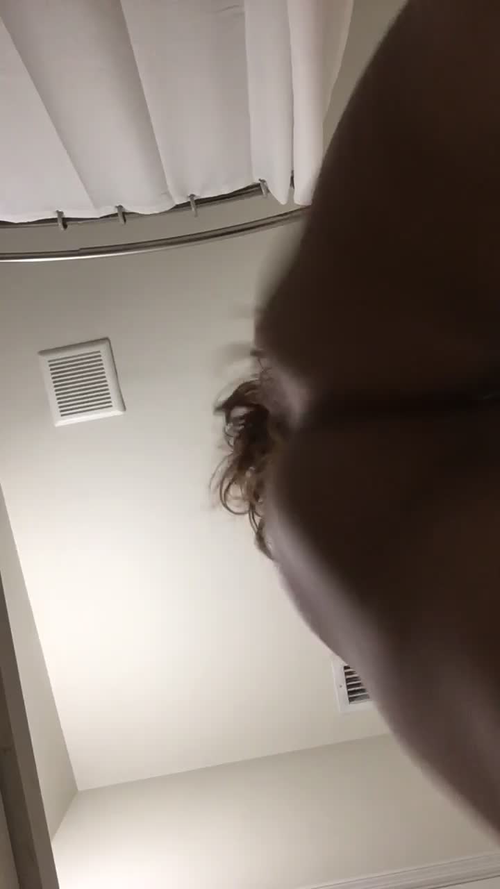 Довольно возбуждает вид снизу на эту трясущую своей попой голышку!