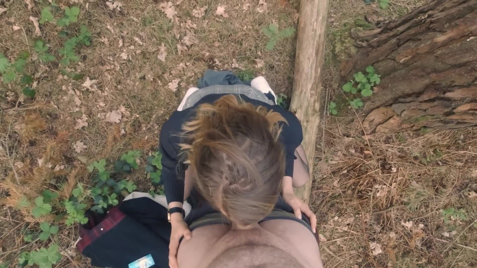 Прогулка с подружкой по лесу закончилась сексом. Отсосав член поставил ее раком и трахнул.