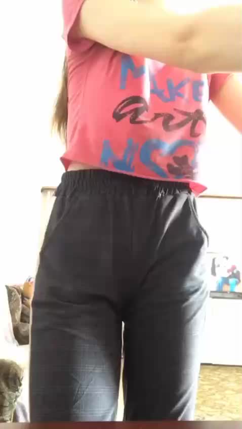 Стройная молоденькая красотка раздевается и показывает свою писечку