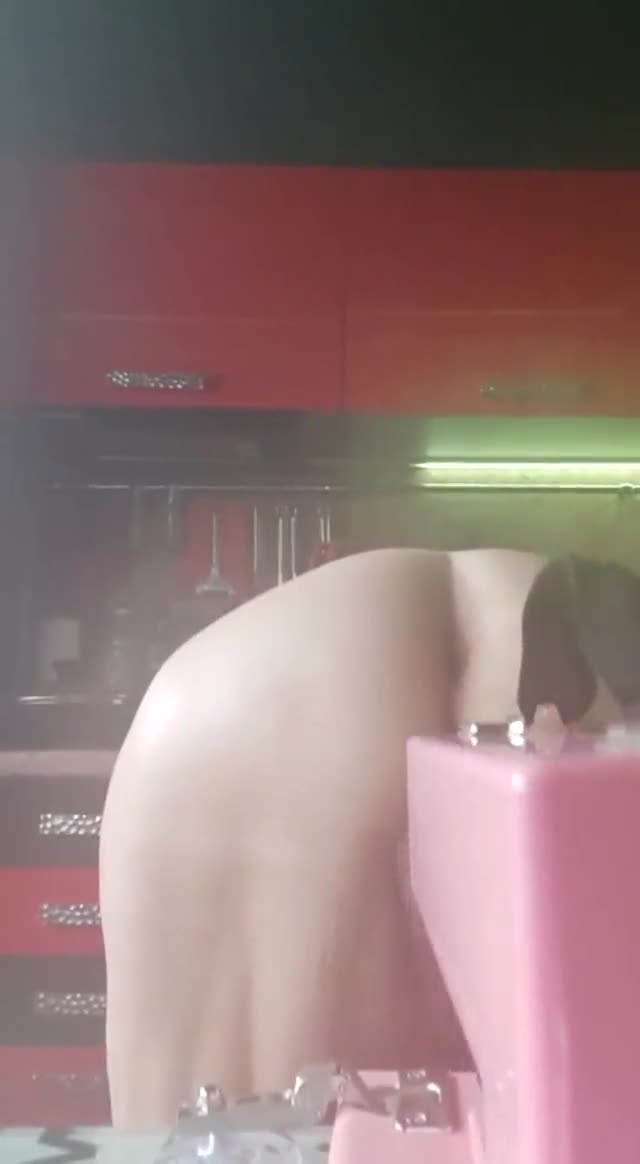 Женщина в возрасте на кухне в позе раком подставляет свою киску для траха сексмашинкой!