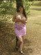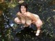 Красивая девушка в красивых природных условиях показывает красивую грудь