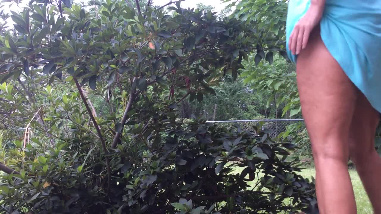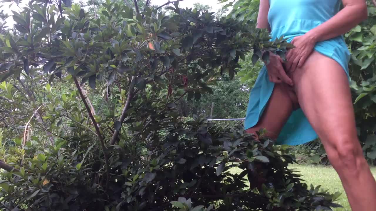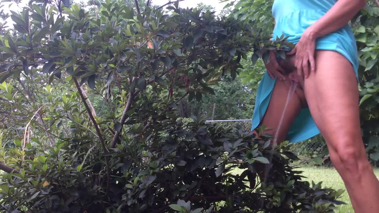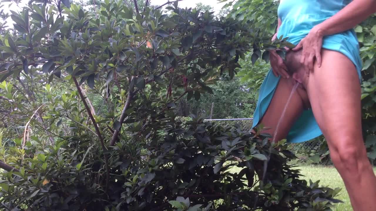 Стройная зрелая женщина снимает на видео как стоя писает на кустик!