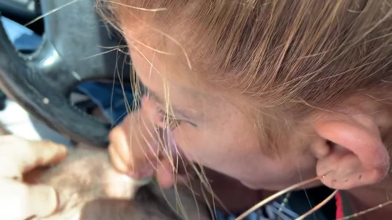 Зрелая шлюха сосет за рулем