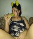 Милая девушк аразвлекается с постороннии предметами в стиле "Плейбоя"