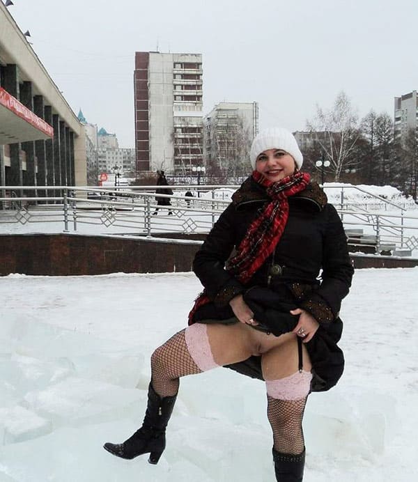 показывает пизду под курткой зимой