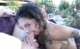 На даче девушках в наколках с патуинами сначла рыбку половила, а потм, не ограничившись, паработала с мужчиком и даже огромным зеленым огурцом