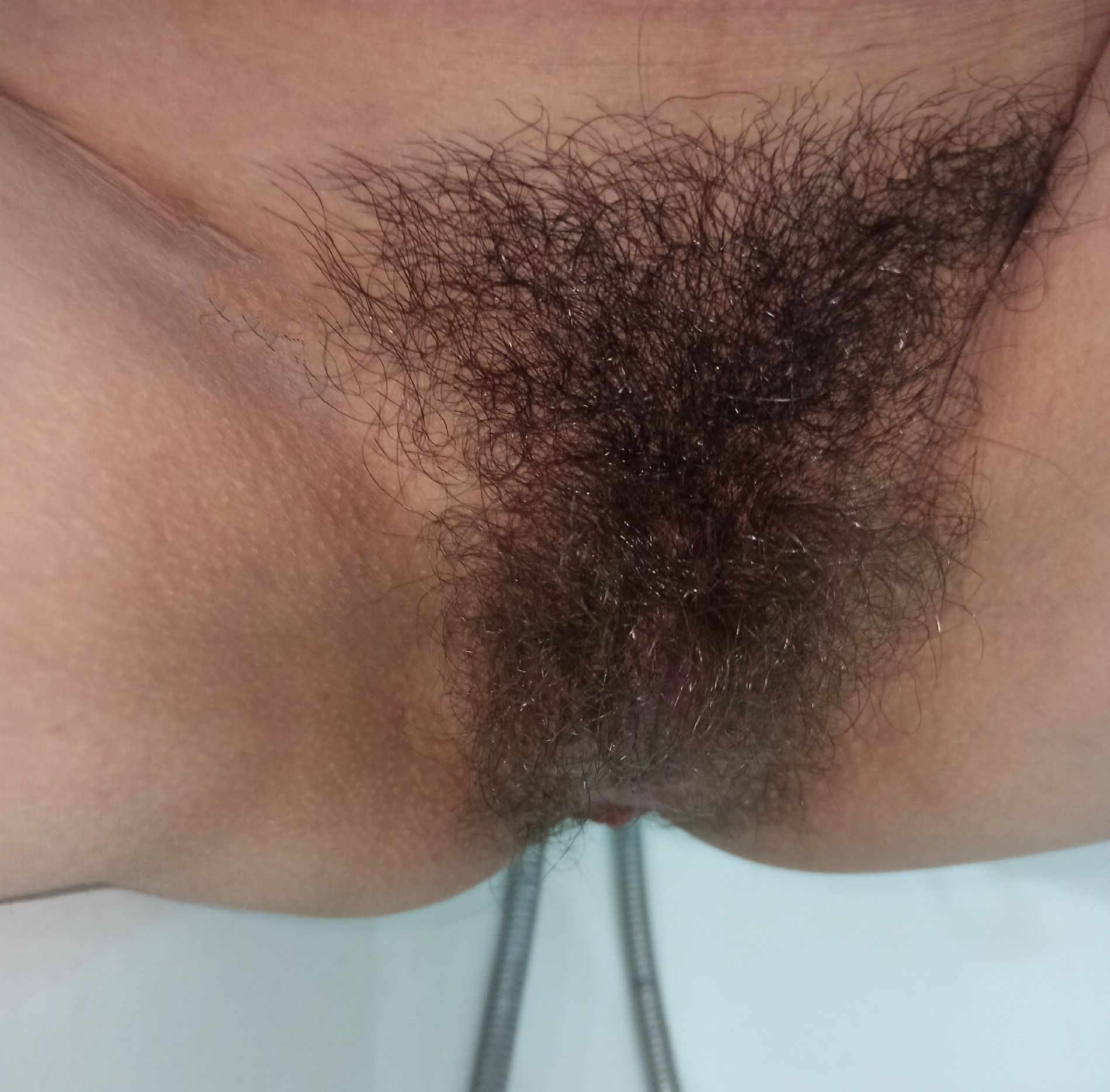 Волосатая писечка женщины в ванной крупным планом!
