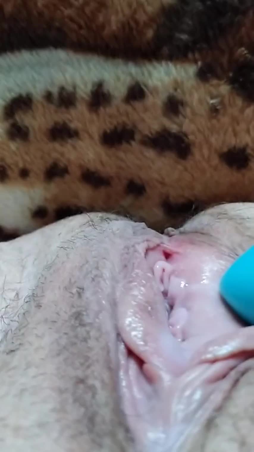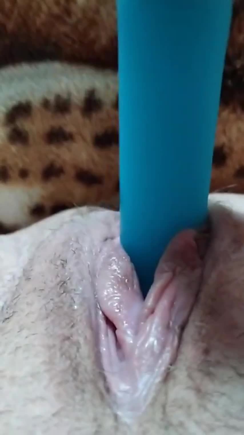 Зрелая женщина трахает свою сочную киску синим вибратором и снимает на видео!