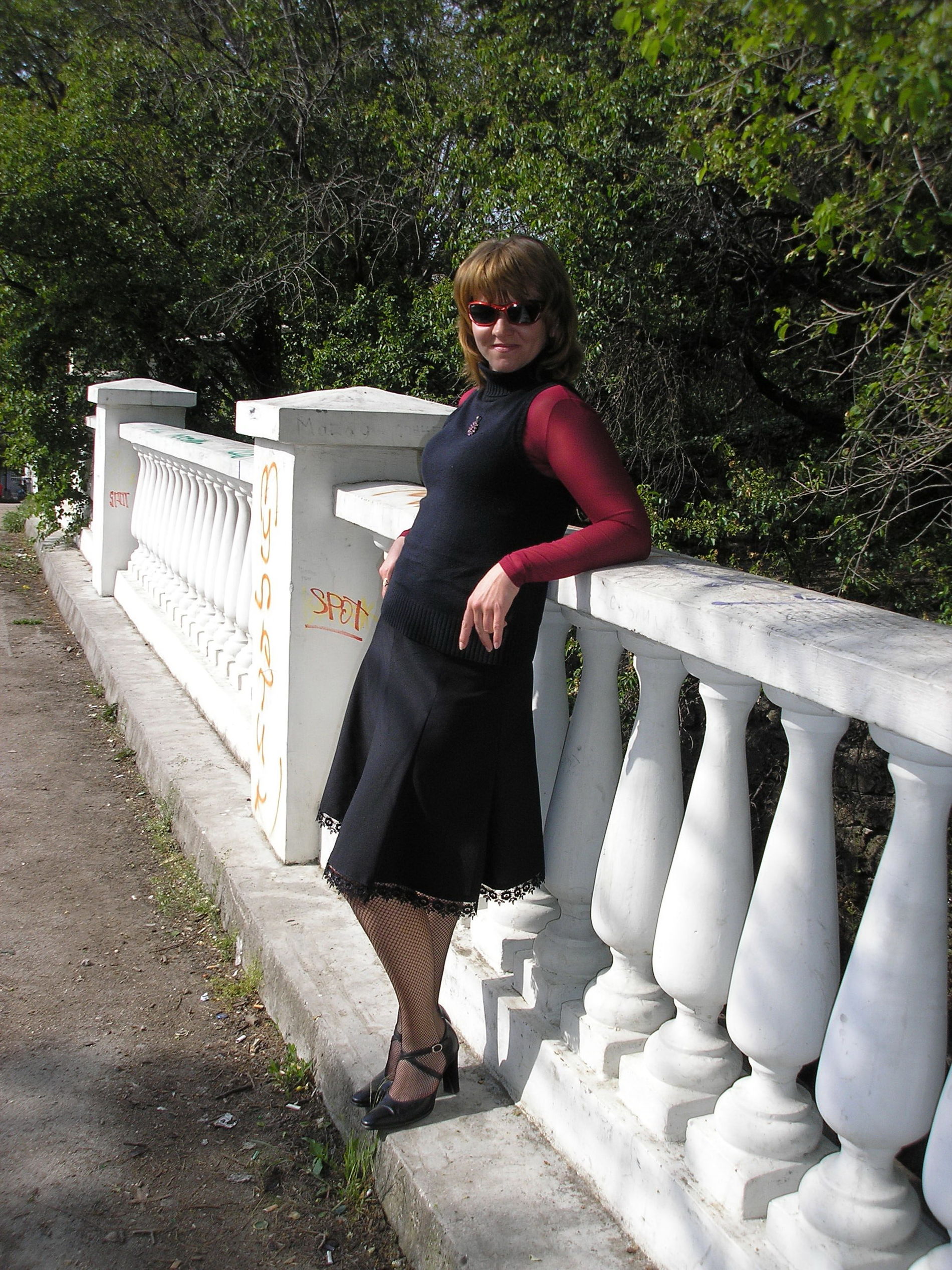 Аллочка выгуливает в парке свою выдающуюся киску.