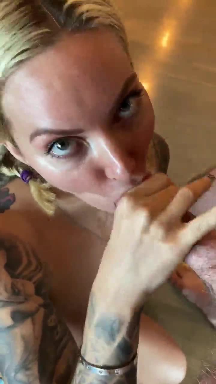 Татушная девушка отсасывает член и даёт ему войти в анал