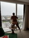 Женщина демонстративно показывает свой загар на теле прямо у окна