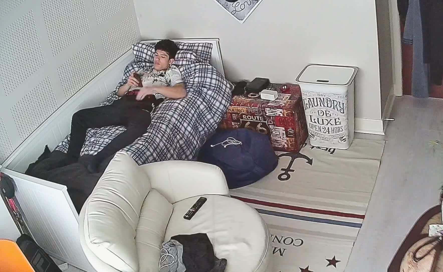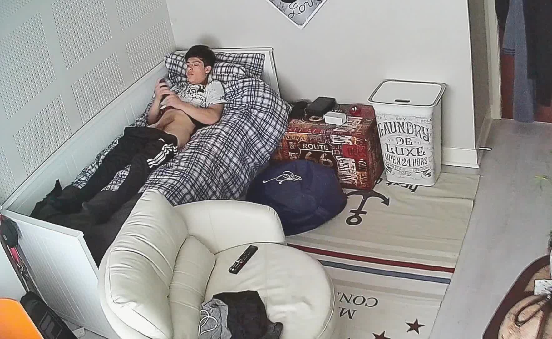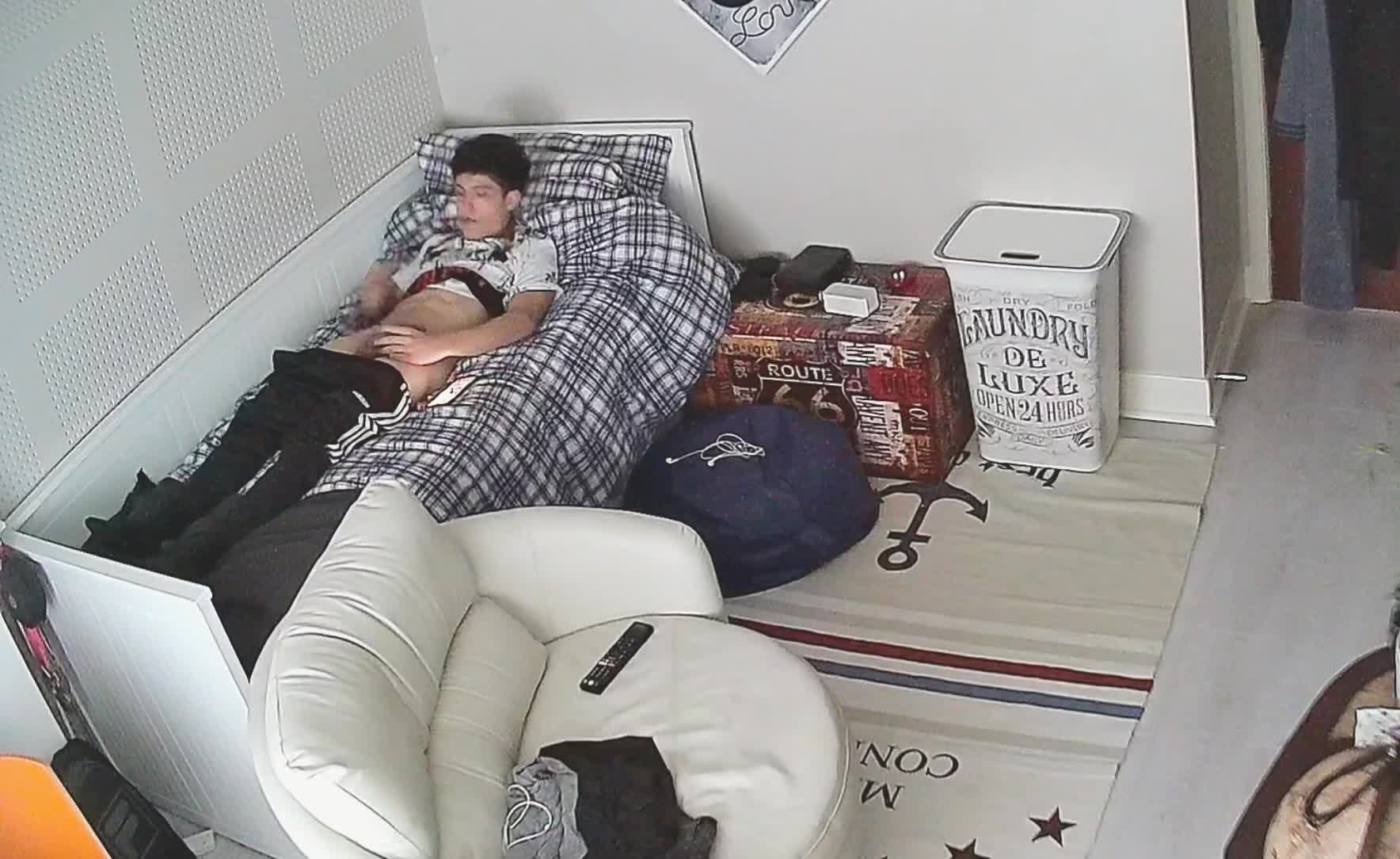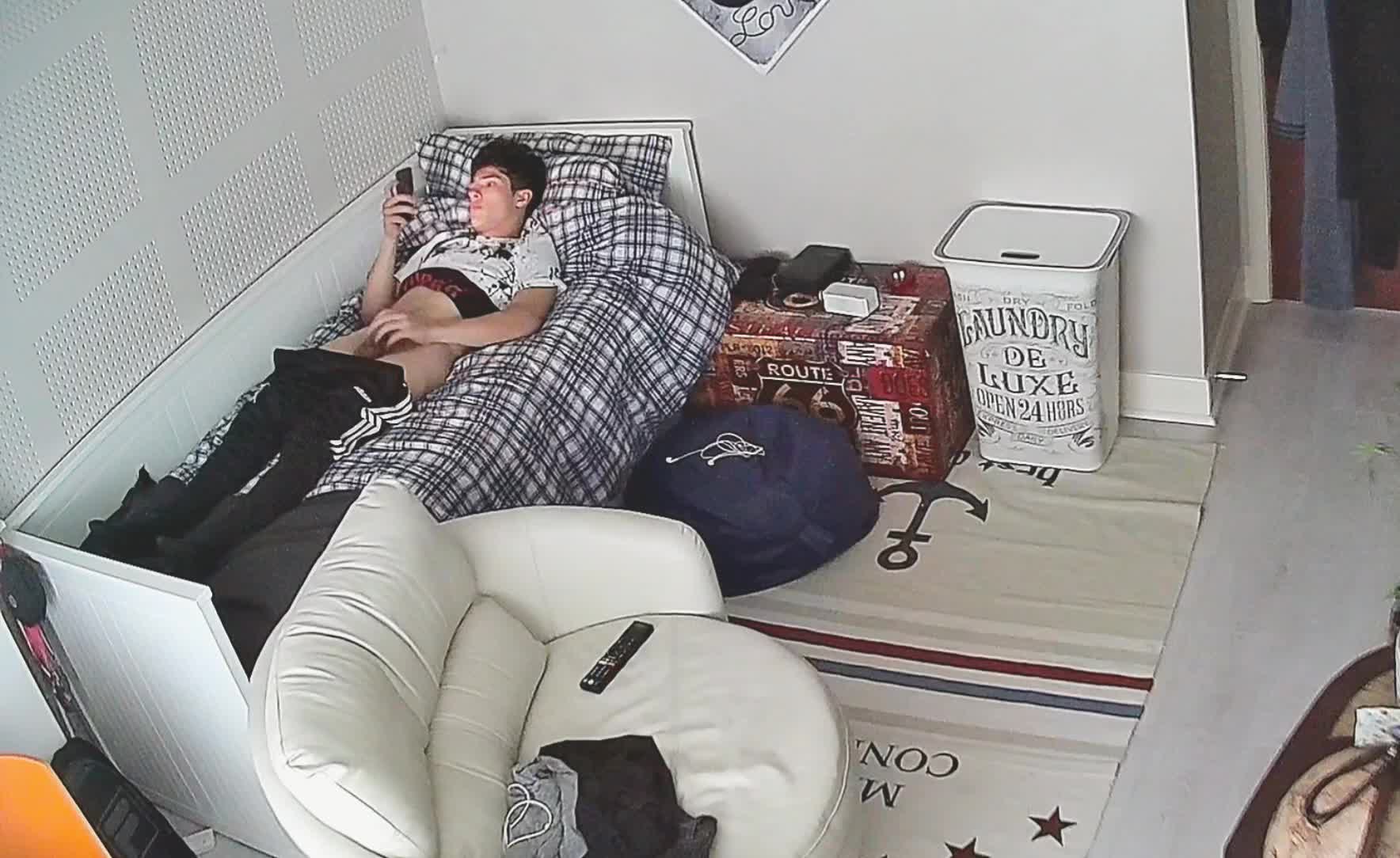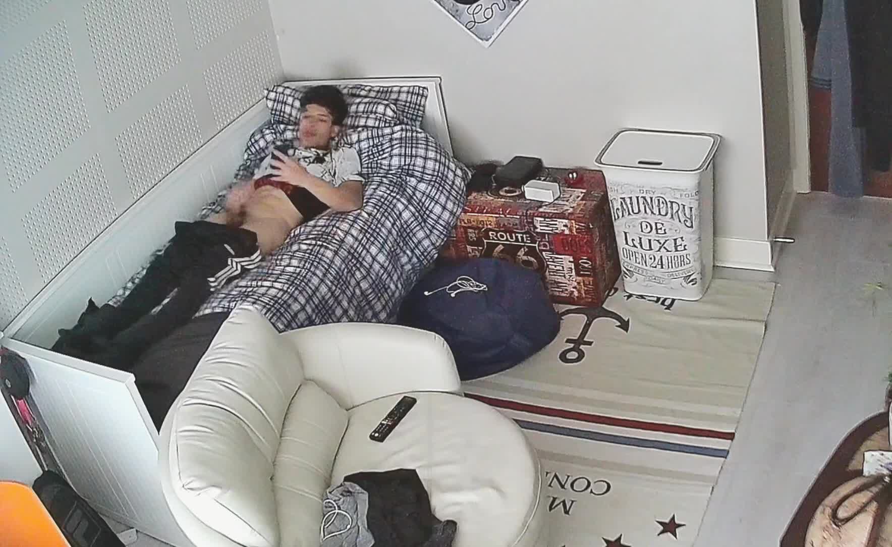 Молодой парень латинос подрачивает на порно в своей комнате.