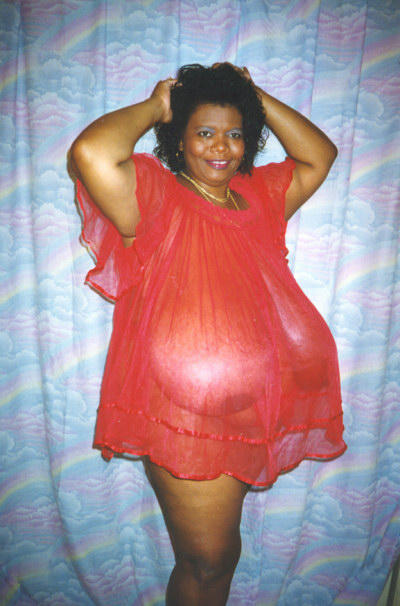 шоколадка пышных форм приподняла, а затем сняла свой прозрачный красный пеньюарчик показав свои огромные грудки.