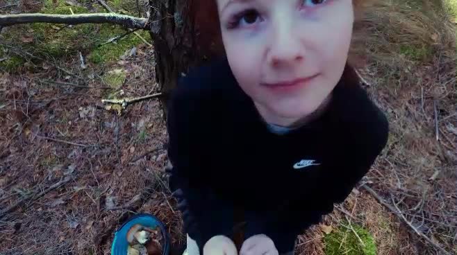 Девушка собирала в лесу грибы и встретилась с лесником. Пришлось ему отсосать за грибочки.