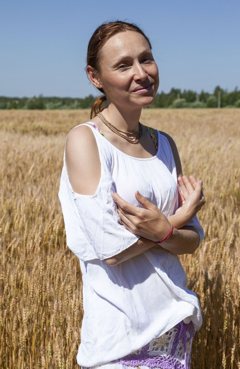 Ната показывает свои пушистые ямы и кусты на пшеничном поле