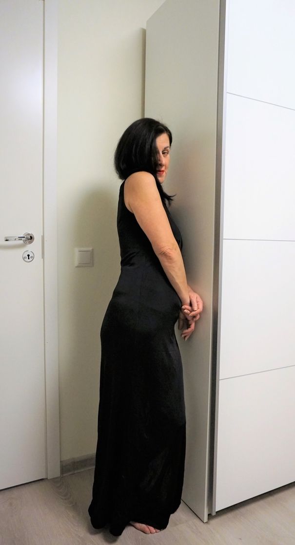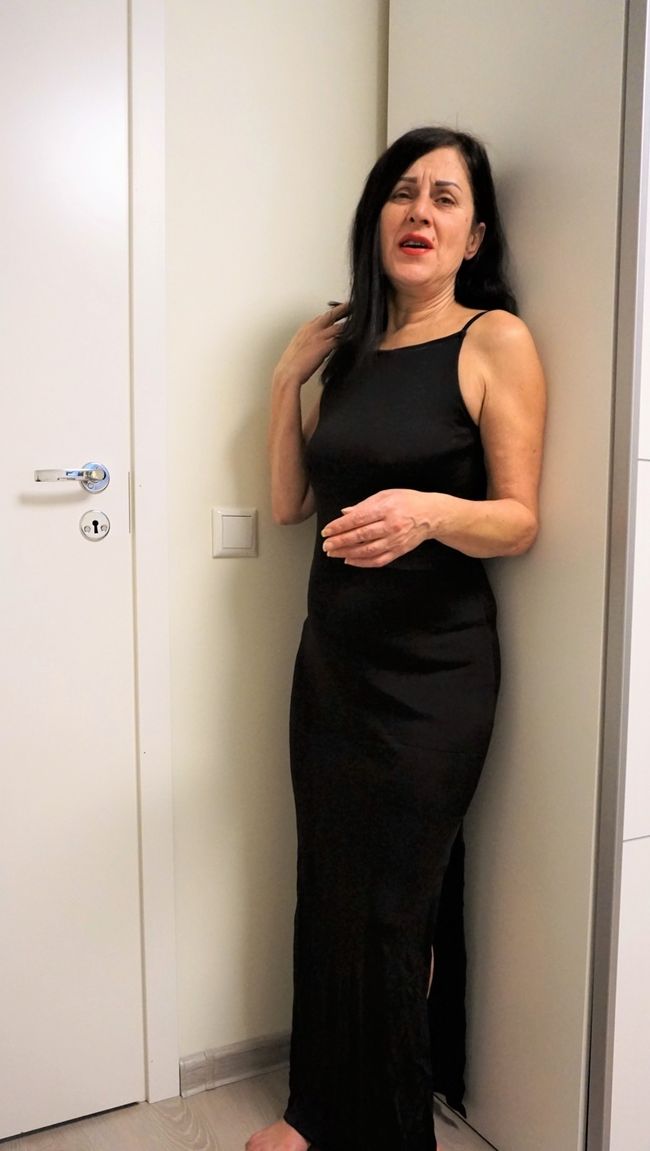 Диана подтягивает длинное платье, чтобы обнажить свою вагину