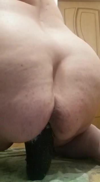 Женщина в возрасте с большой попкой неспеша насаживается писей на большой кабачок!