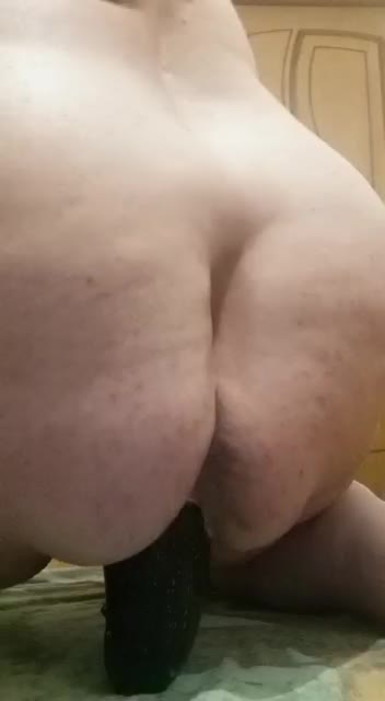 Солидный кабачок она принимает. А попка видно тоже рабочая. Хотя форма булок у этой пышки не очень симпатичная.