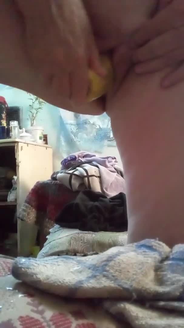 Старая женщина в возрасте трахает себя в киску и в попку большим огурцом и снимает на видео!