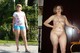 Такая приличная дама на первом фото,и похотливая шлюха с текущей пиздой на втором. Класс!