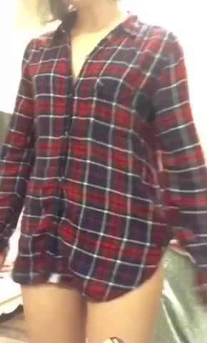 Улыбающаяся девушка раздевается перед камерой, показывая маленькое стройное тело