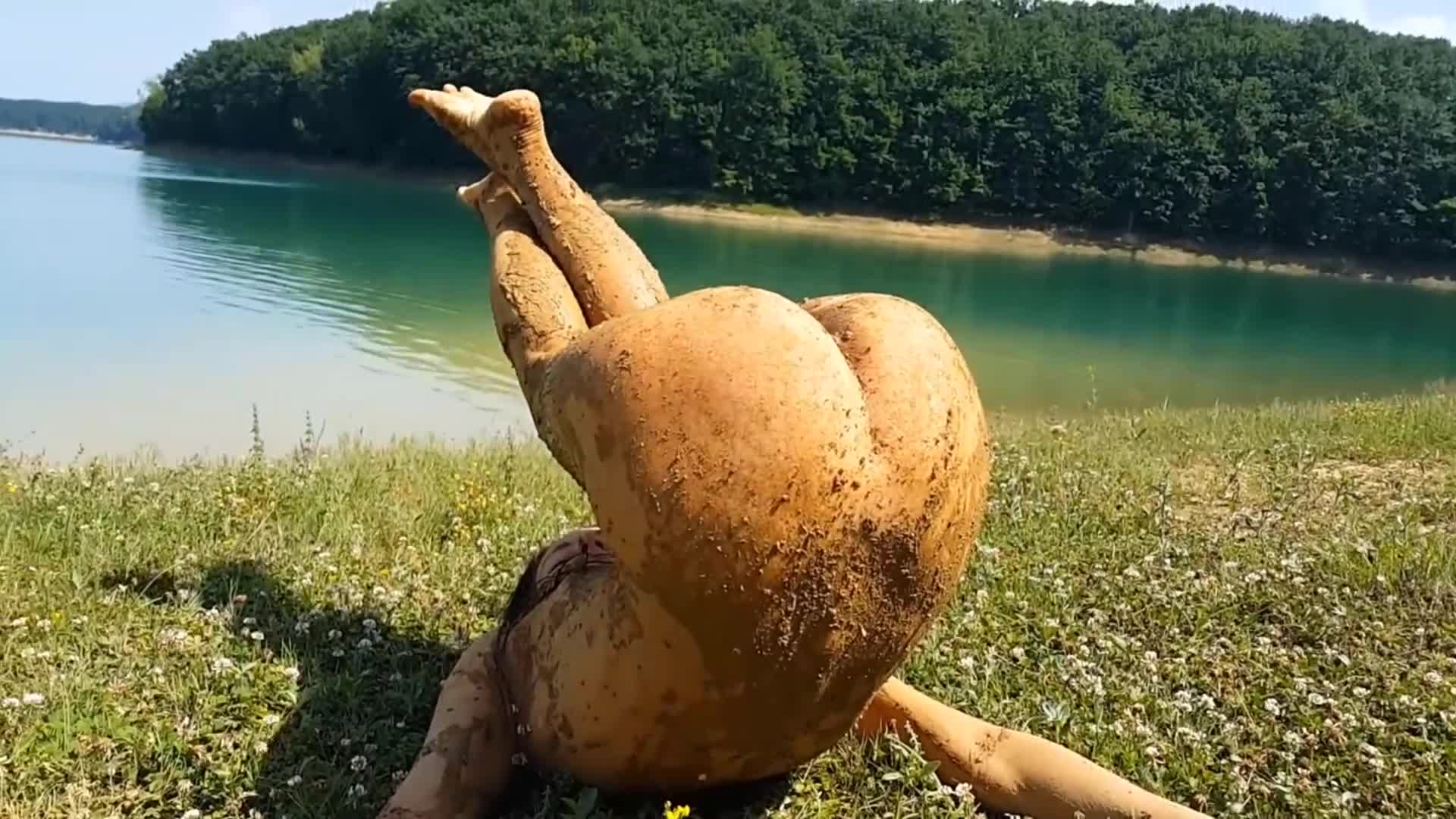 Стройненькая и симпатичная свинка Пеппа, вот уж от души поозорничала, повымазалась с ног до головы в глине, повалялась всласть на травке и даже показала нам свою розовенькую вагинку, ну не прелесть ли, а затем искупается в озере красотка, почистит пёрышки и вновь засверкает притягательной женской натурой!