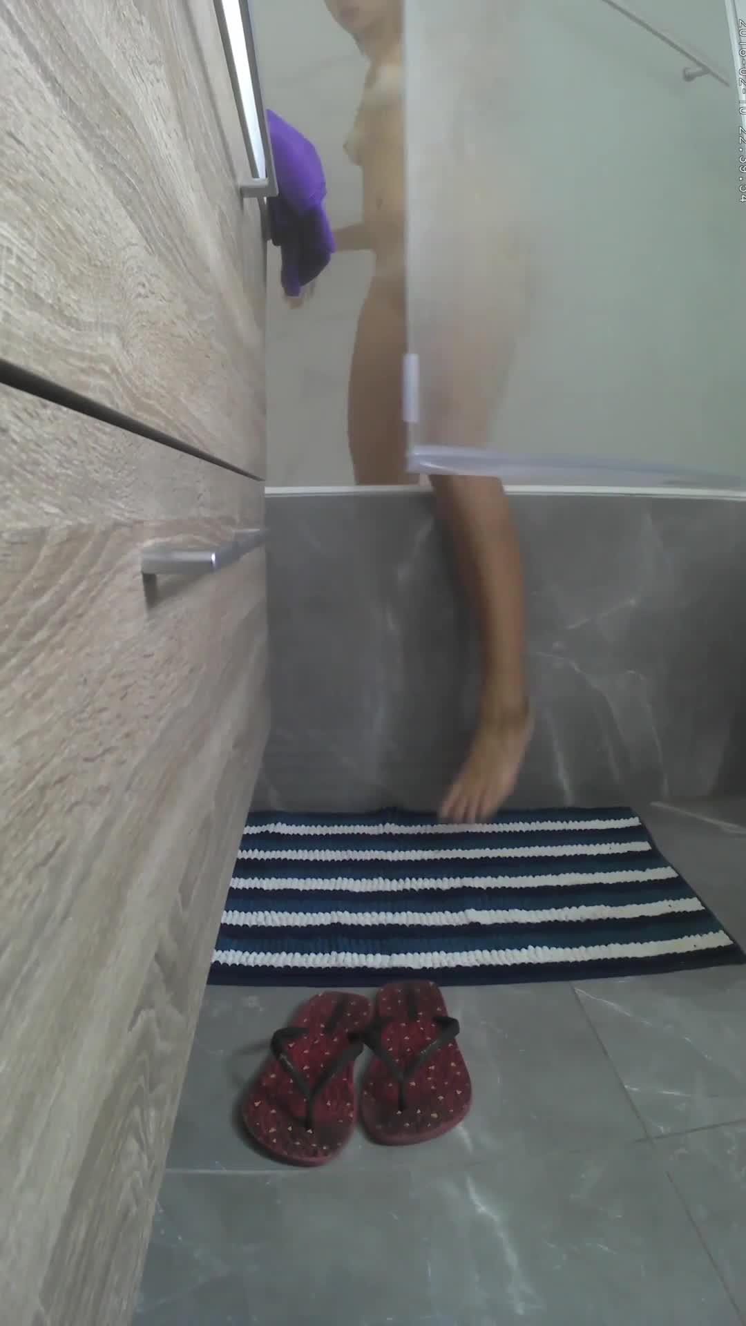 Скрыто снято когда милая выходила из душа и не знала о съемке