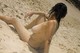Брюнетка из Великобритании позирует на песке, демонстрируя красивое тело