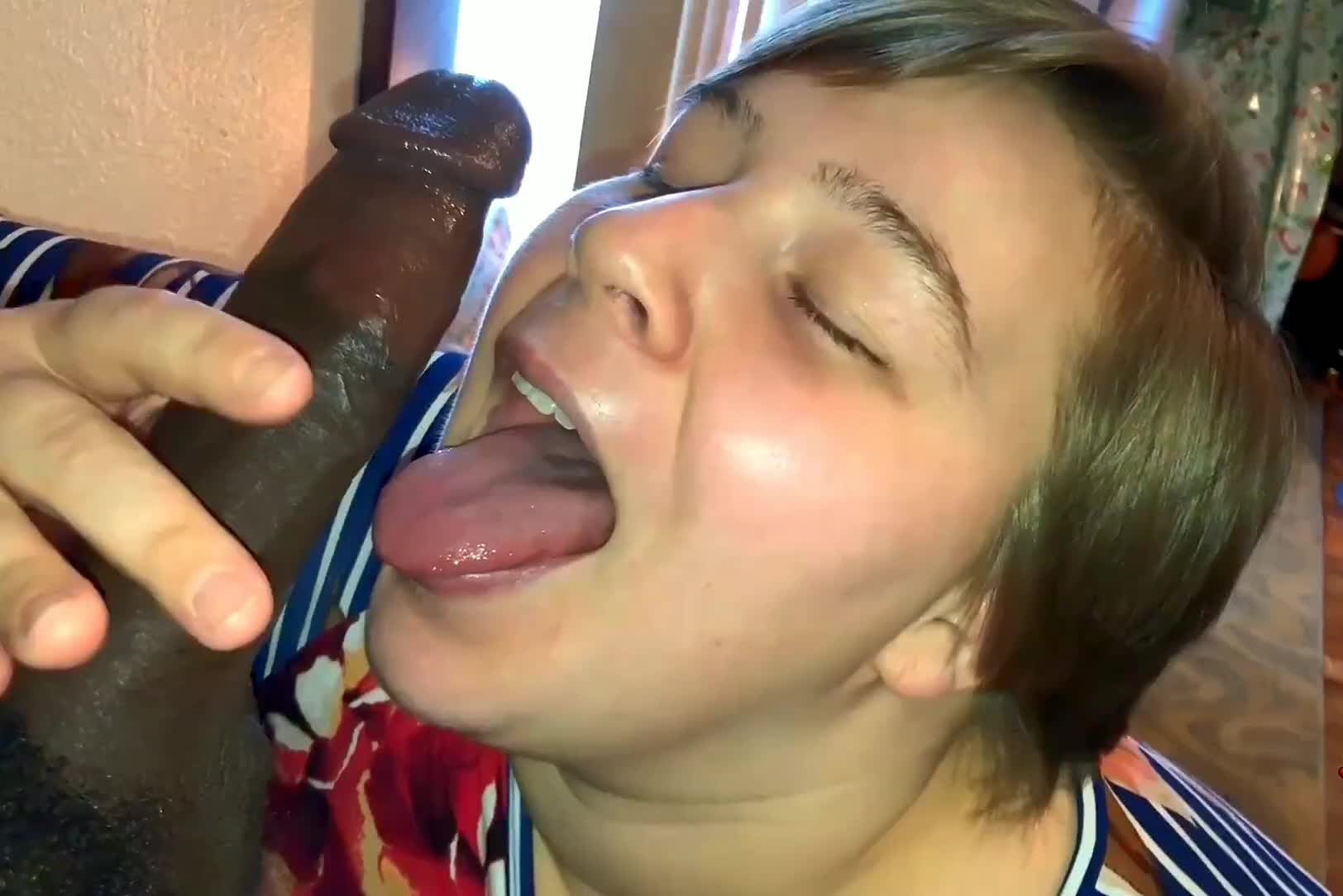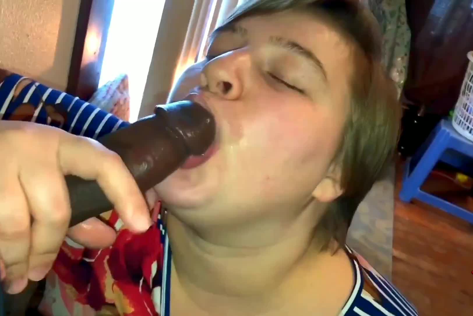 Белая девка сосёт своему шоколадному другу.