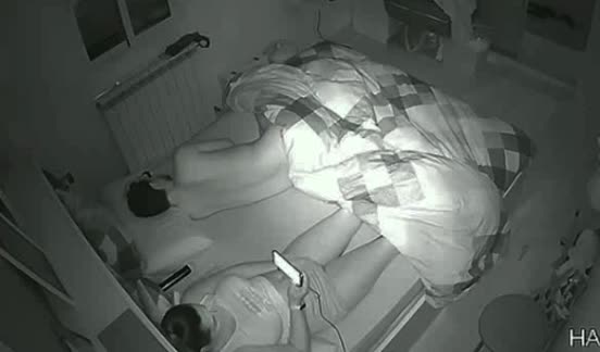 Муж после работы спит, а жена под просмотр порнушки в телефоне теребунькает свою пелотку.