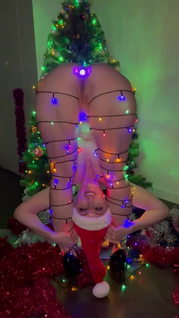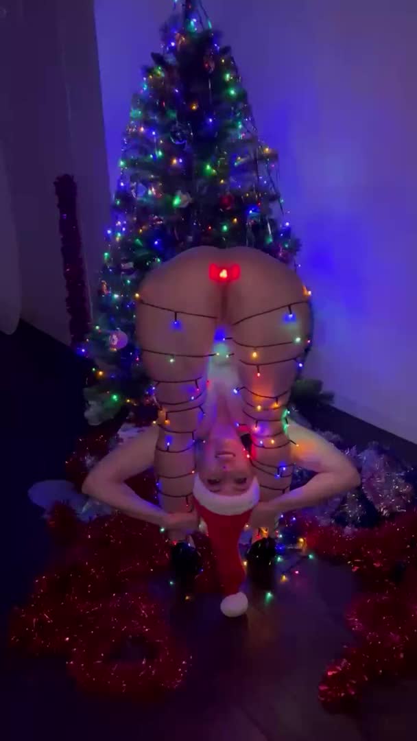 Показала как мигают лампочки на ёлке и на ней.