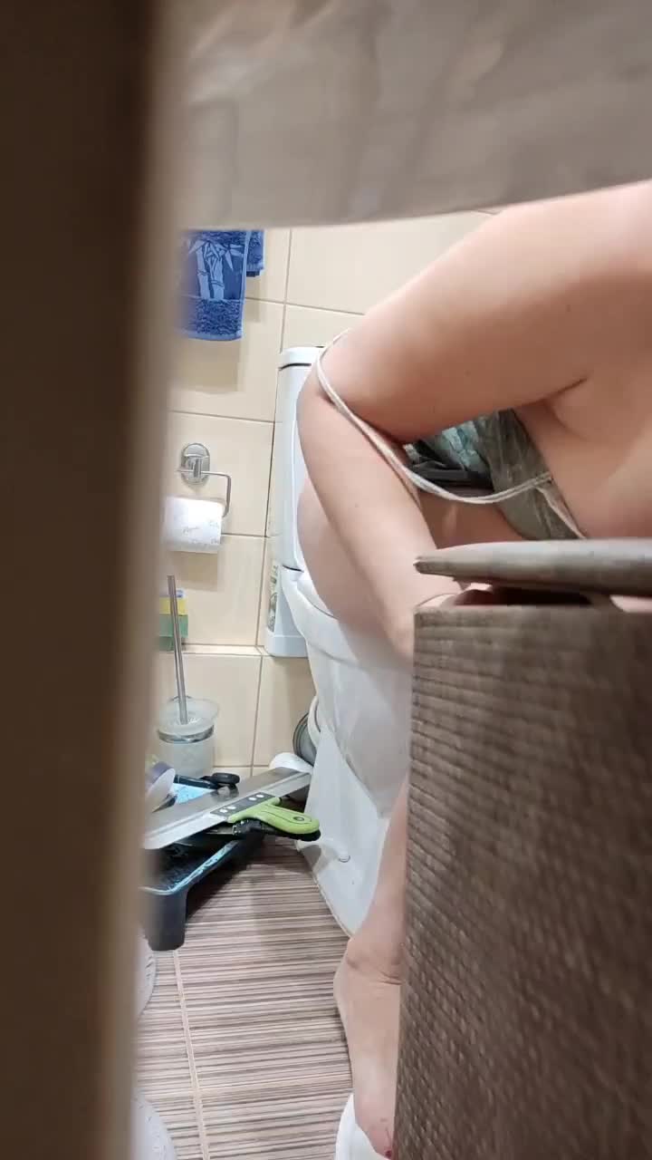 Дамаска запалтла свою киску на спрятанную камеру в домашнем туалете.