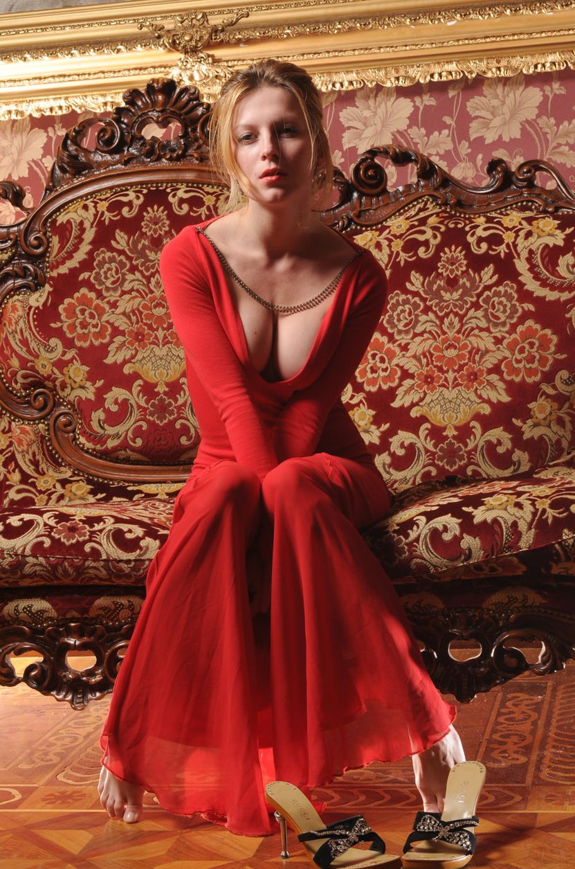 Яра поднимает подол своего платья и изумляет своей киской и красивыми сиськами