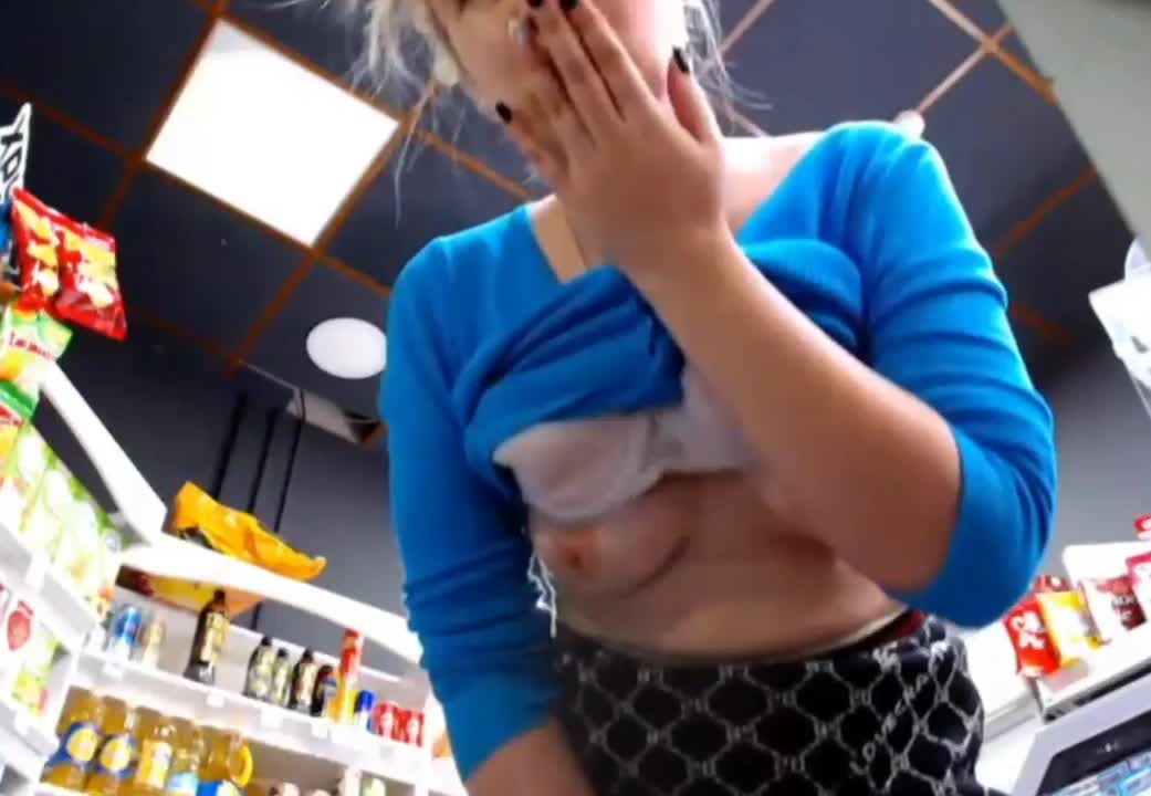 продавщица продуктового магазина подрабатывает в интернете, показывая прелести