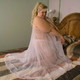 Красивая белокурая пышная женщина дома.